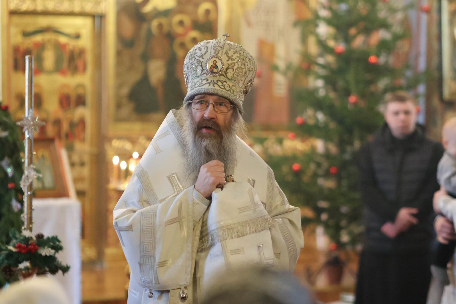 По окончании богослужений Его Высокопреосвященство обратился к собравшимся с архипастырским словом, поздравив их с Сочельником и с наступающим Рождеством Господа и Спасителя нашего Иисуса Христа.