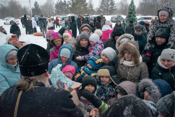 7 января у Введенского храма в п. Апрель собрались местные жители и гости посёлка, чтобы поздравить друг друга с праздником Рождества Христова.