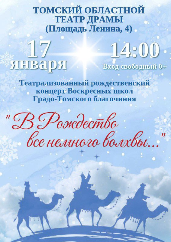 17 января в Томском областном театре драмы состоится театрализованный рождественский концерт воскресных школ Градо-Томского благочиния «В Рождество все немного волхвы…».