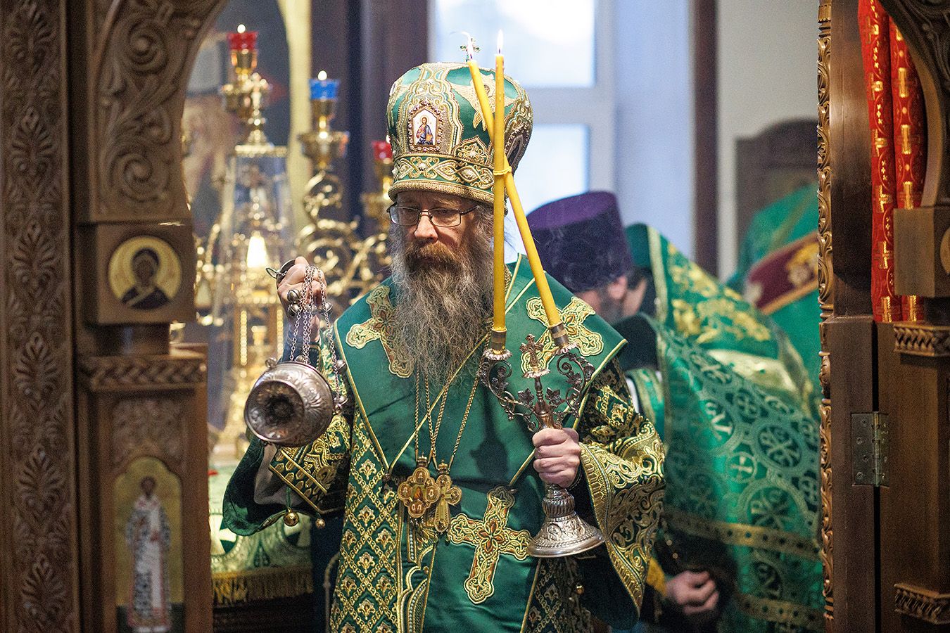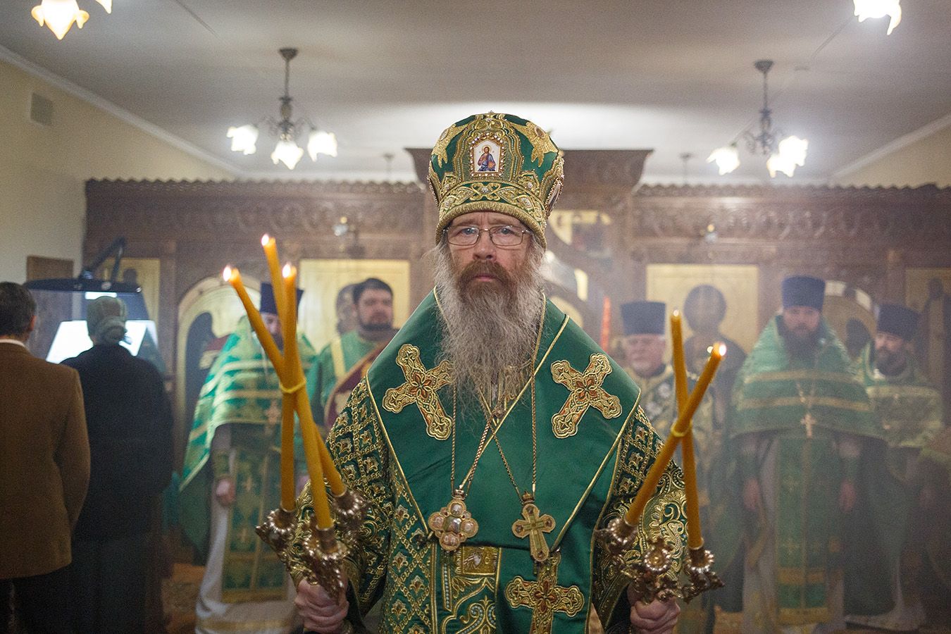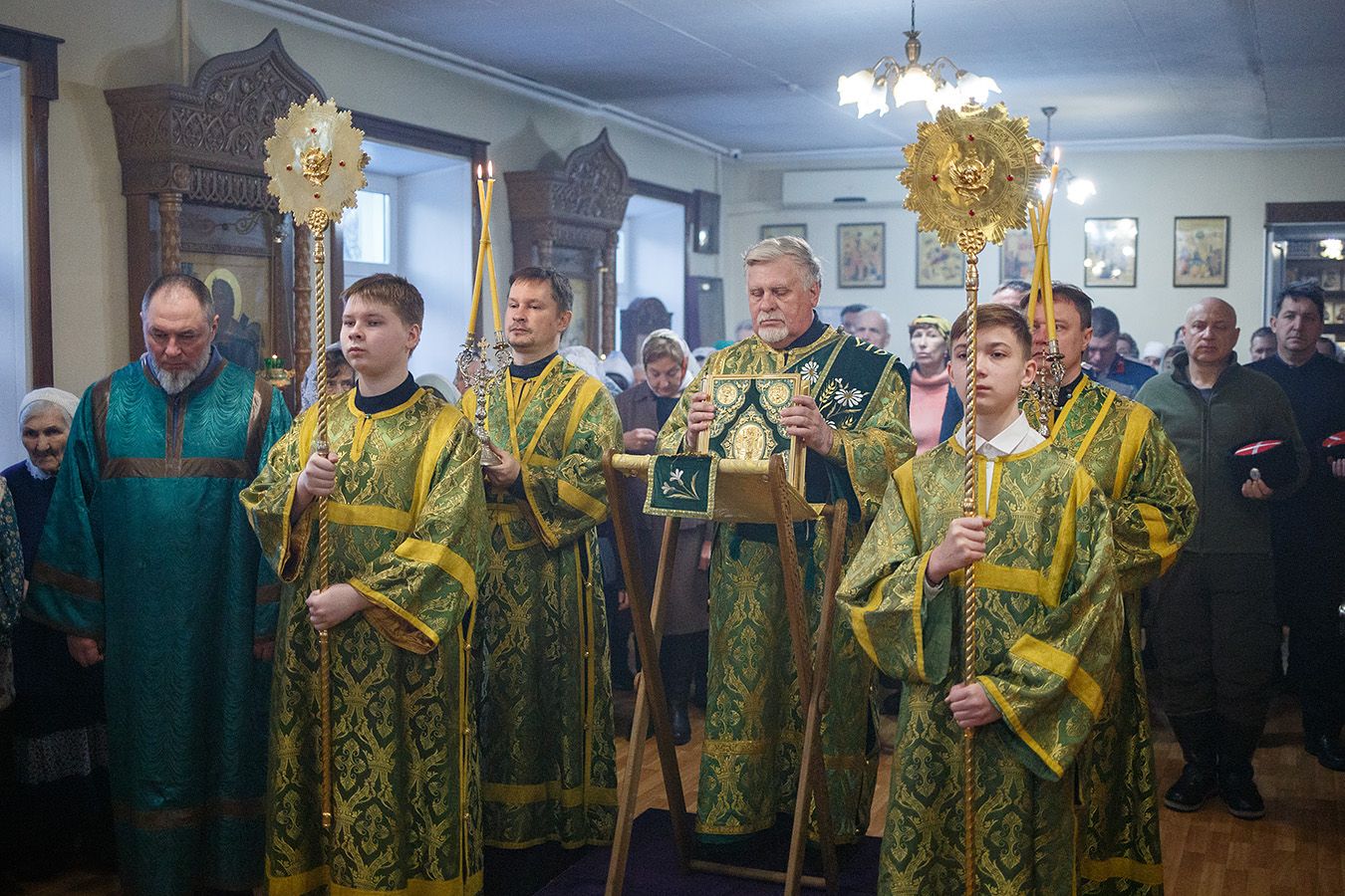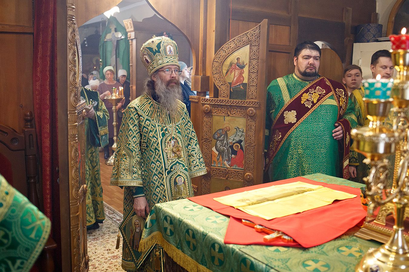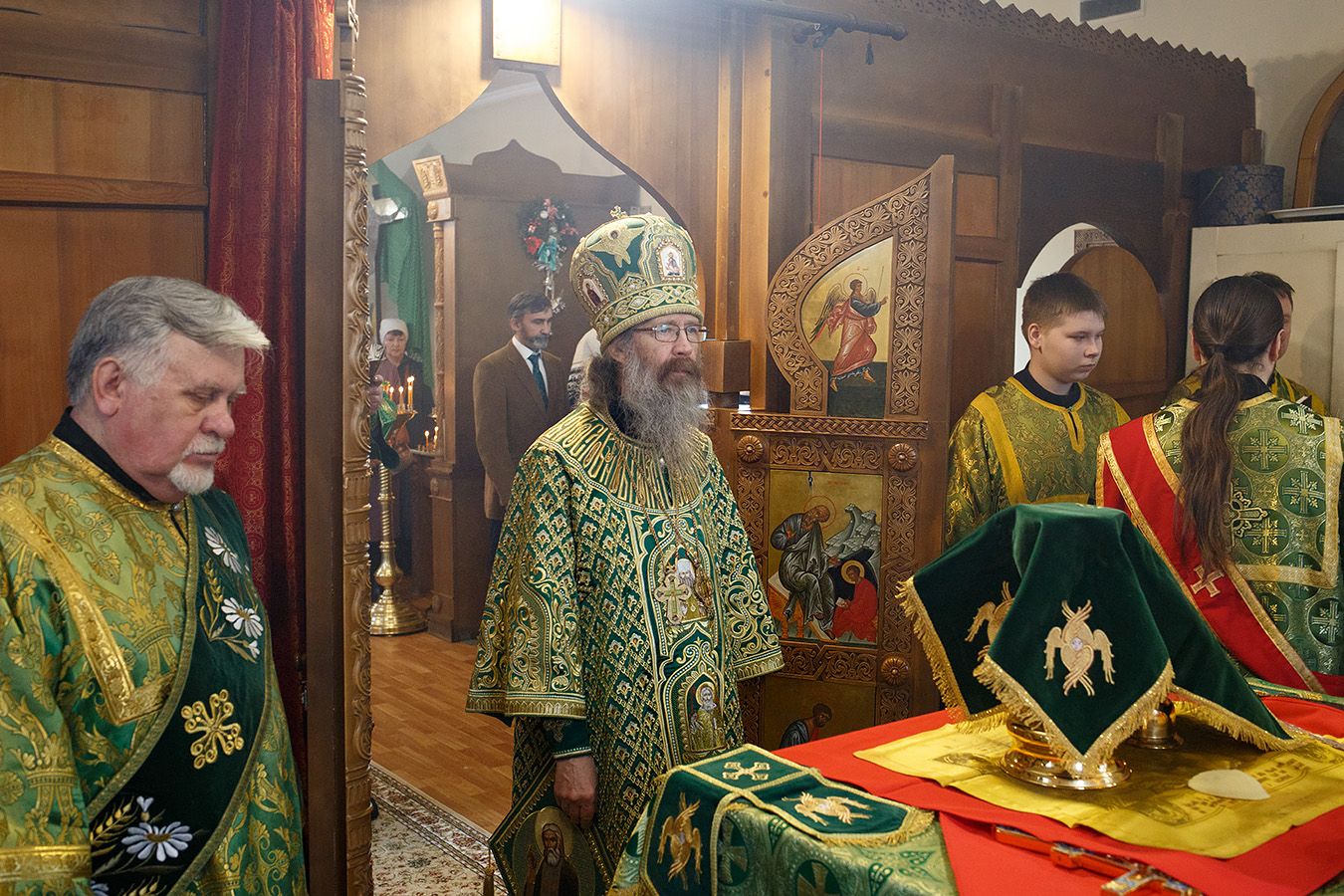 Его Высокопреосвященству сослужили благочинный Градо-Томского благочиния, настоятель храма святого благоверного князя Александра Невского г. Томска протоиерей Сергий Никаноров, благочинный Томского района, настоятель храма Владимирской иконы Божией Матери г. Северска протоиерей Дионисий Степанов, настоятель храма прп. Серафима Саровского г. Северска протоиерей Димитрий Сергеев и настоятель храма апостола Иоанна Богослова г. Томска иерей Дионисий Землянов.