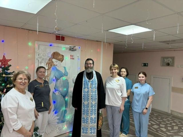 9 января штатный священник Владимирского храма поздравил с Рождеством врачей и пациенток Северского Перинатального центра. Он подарил врачам торты, а пациенткам – шоколадки.