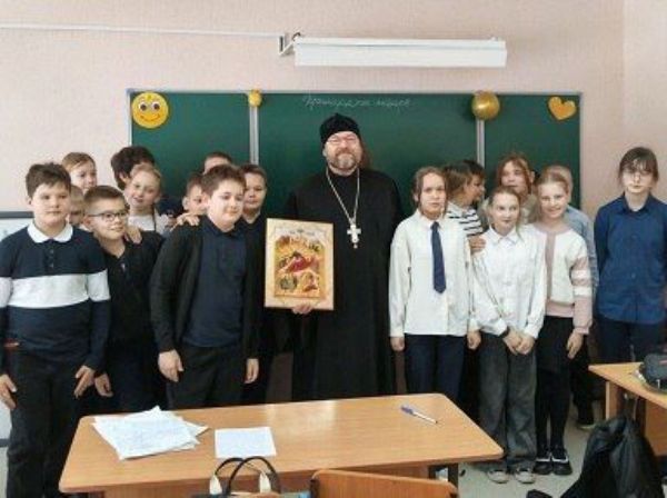 13 января настоятель Свято-Троицкой церкви протоиерей Святослав Зулин встретился с учениками 4 «Г» и 5 «Б» классов МАОУ Гимназия № 26. Он рассказал ребятам об истории праздника Рождества Христова, ответил на вопросы и спел колядки. Встречи вышли очень живыми, было много вопросов, порой неожиданных, например: «Что чувствует человек во время Крещения?». На память о встрече отец Святослав подарил школьникам рождественские выпуски журнала «Весточка» и поздравительные открытки-календарики. Также под руководством учителя Марины Анатольевны Нагорновой со стихотворной композицией о Рождестве Христовом выступили ученики 1-х и 2-х классов.
