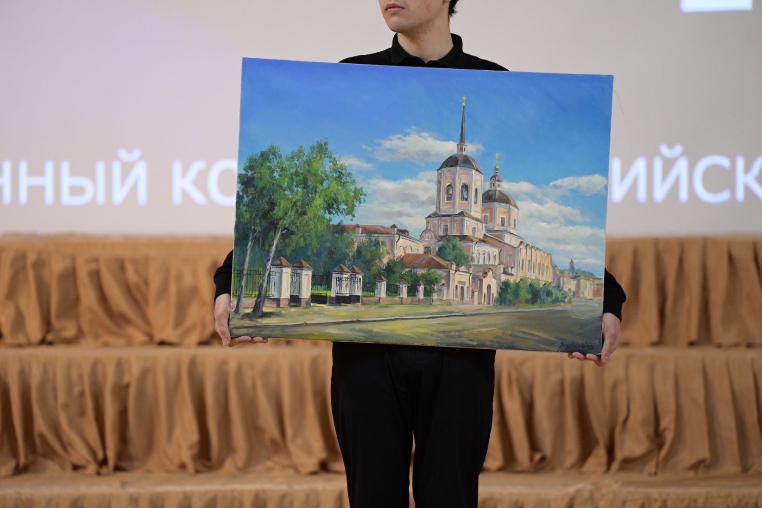 Глава Томской митрополии подарил Главе Следственного комитета картину с изображением Богоявленского кафедрального собора, который в этот день отмечал престольный праздник.