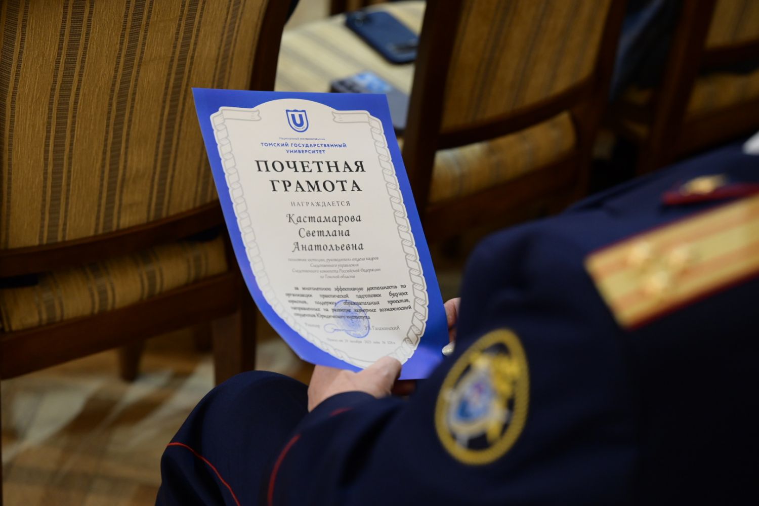 Открывая торжественное собрание, руководитель следственного управления генерал-майор юстиции Андрей Щукин отметил, что за полтора десятилетия Следственный комитет занял важное место в правовой системе страны, надежно оберегая безопасность государства и неуклонно защищая права и свободы граждан.