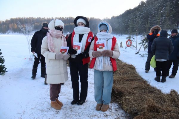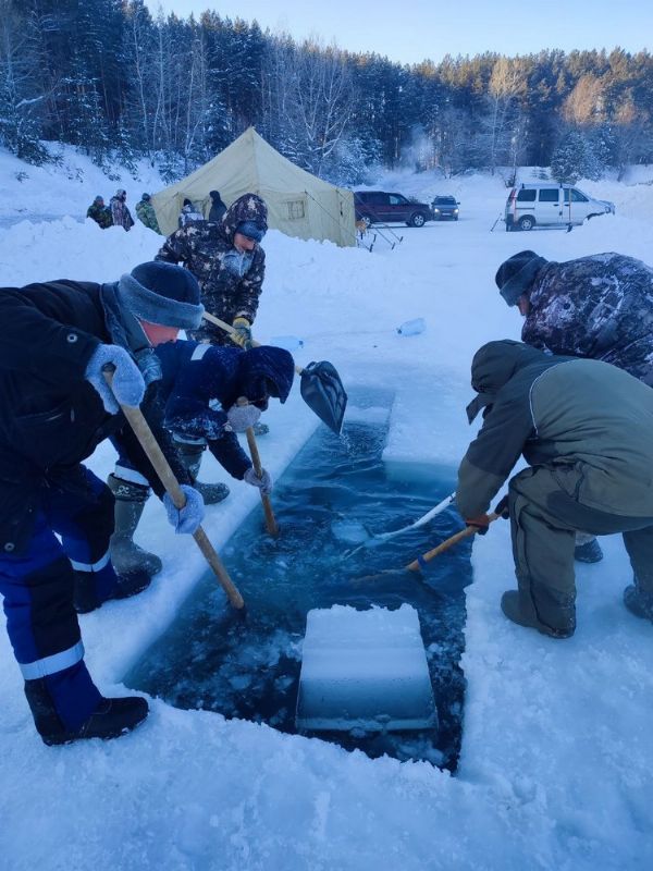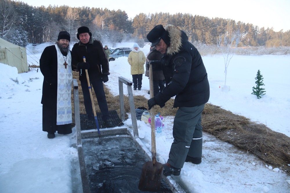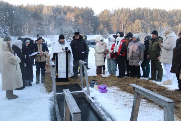 На праздник Богоявления в Шегарском районе по сложившейся традиции чин великого освящения воды совершается не только в храмах, но и на озере Лебяжьем возле с. Победа.