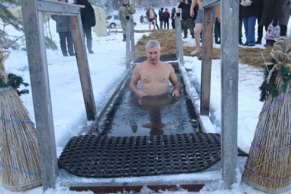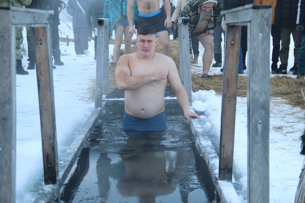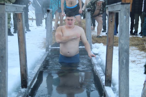 По освящении иордани желающие набрали воду в приготовленные ёмкости, а затем начались купания.