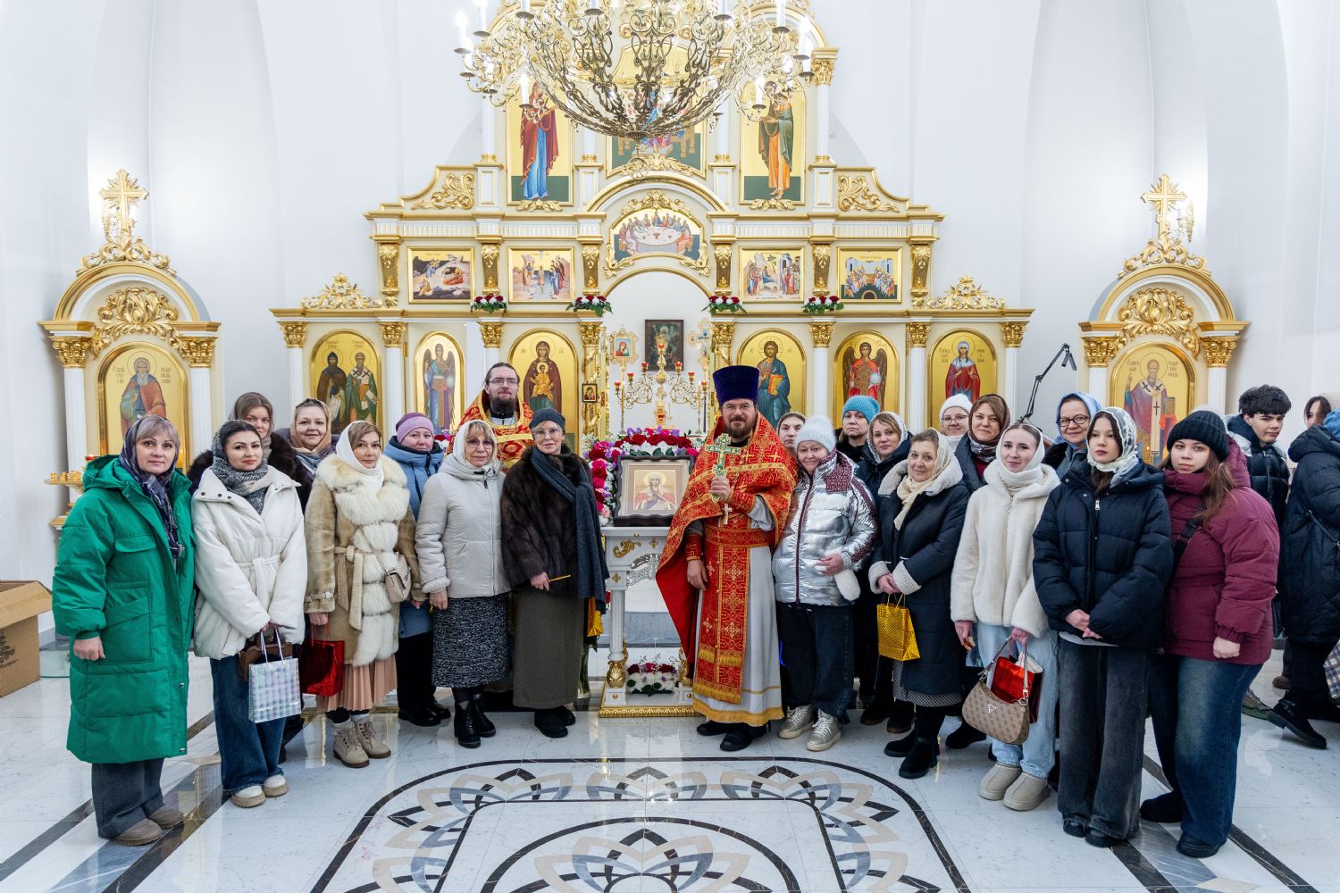 По окончании богослужения всех ждали памятные подарки, а особенные гостинцы достались девушкам и женщинам, носящим тия святой Татианы. Их собралось на службу как никогда много — 25 человек. Все Татьяны собрались вокруг украшенной иконы своей святой покровительницы и сделали памятное фото.
