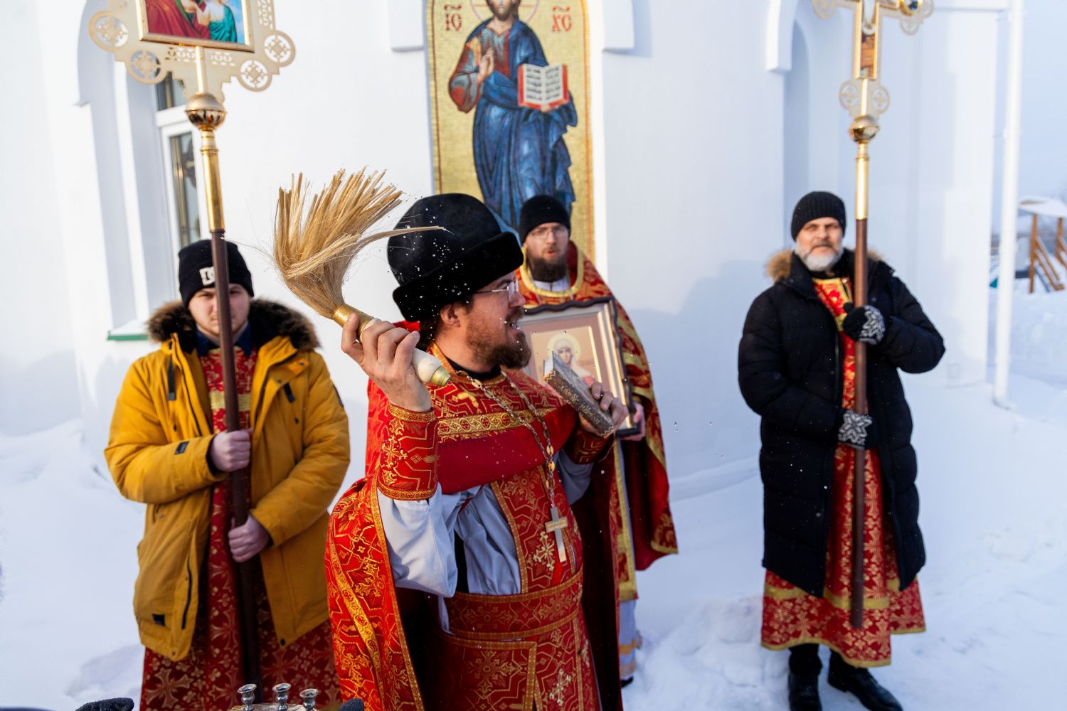 По окончании Литургии был совершен молебен о благословении на учебу и сдачу экзаменов для студентов. Для них был организован специальный автобус, который привез студентов ТГАСУ, Агропромышленного колледжа и Колледжа культуры и искусств. Собравшиеся прихожане вместе со студентами совершили молитву и поучаствовали в крестном ходе вокруг храма.