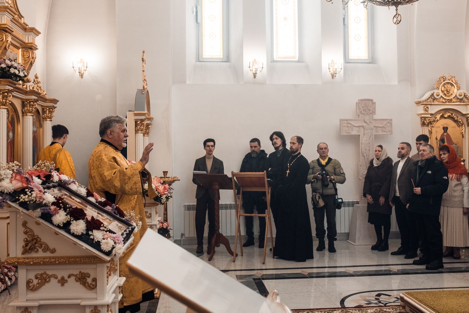 За богослужением в этот день возносились молитвы о здравии Святейшего Патриарха Московского и всея Руси Кирилла в связи с годовщиной его интронизации.