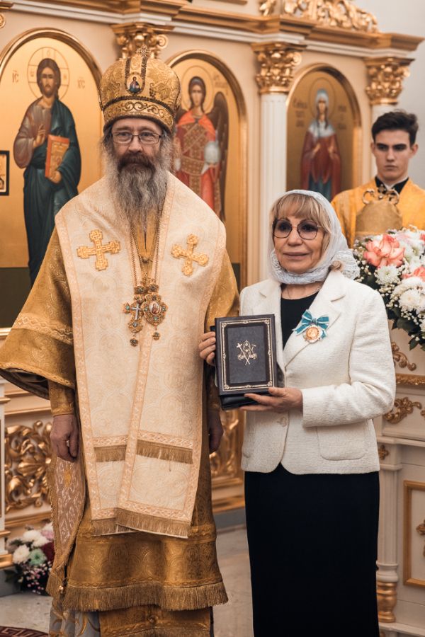 Председатель Законодательной Думы Томской области Козловская Оксана Витальевна обратилась к собравшимся и поблагодарила Главу Томской митрополии за труд по возрождению нравственности и духовности в нашем регионе, благодаря которому появляется всё больше и больше храмов. Оксана Витальевна адресовала слова благодарности и в адрес Губернатора Томской области Владимира Владимировича Мазура, который поддерживает инициативы и строительство православных храмов. Поздравив с высокой наградой Екатерину Мефодиевну Собканюк, Председатель Законодательной Думы особенно подчеркнула её вклад в возведение храма святой мученицы Татианы и других храмов в нашем регионе.