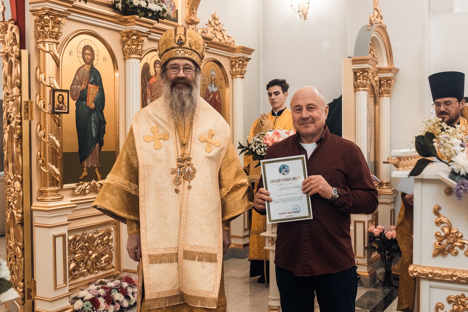 Архиерейской грамоты были удостоены исполнительный директор СЗ "Карьероуправление" Таткин Андрей Анатольевич и директор ООO "Газводстрой" Рыжинский Михаил Семенович.