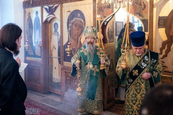 Архипастырям сослужили и.о. игумена обители иеромонах Иов (Коваль) и сонм духовенства Томской епархии.
