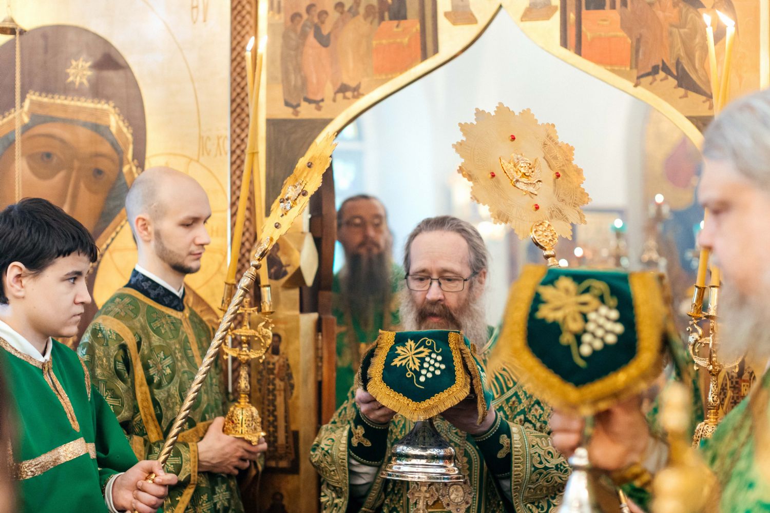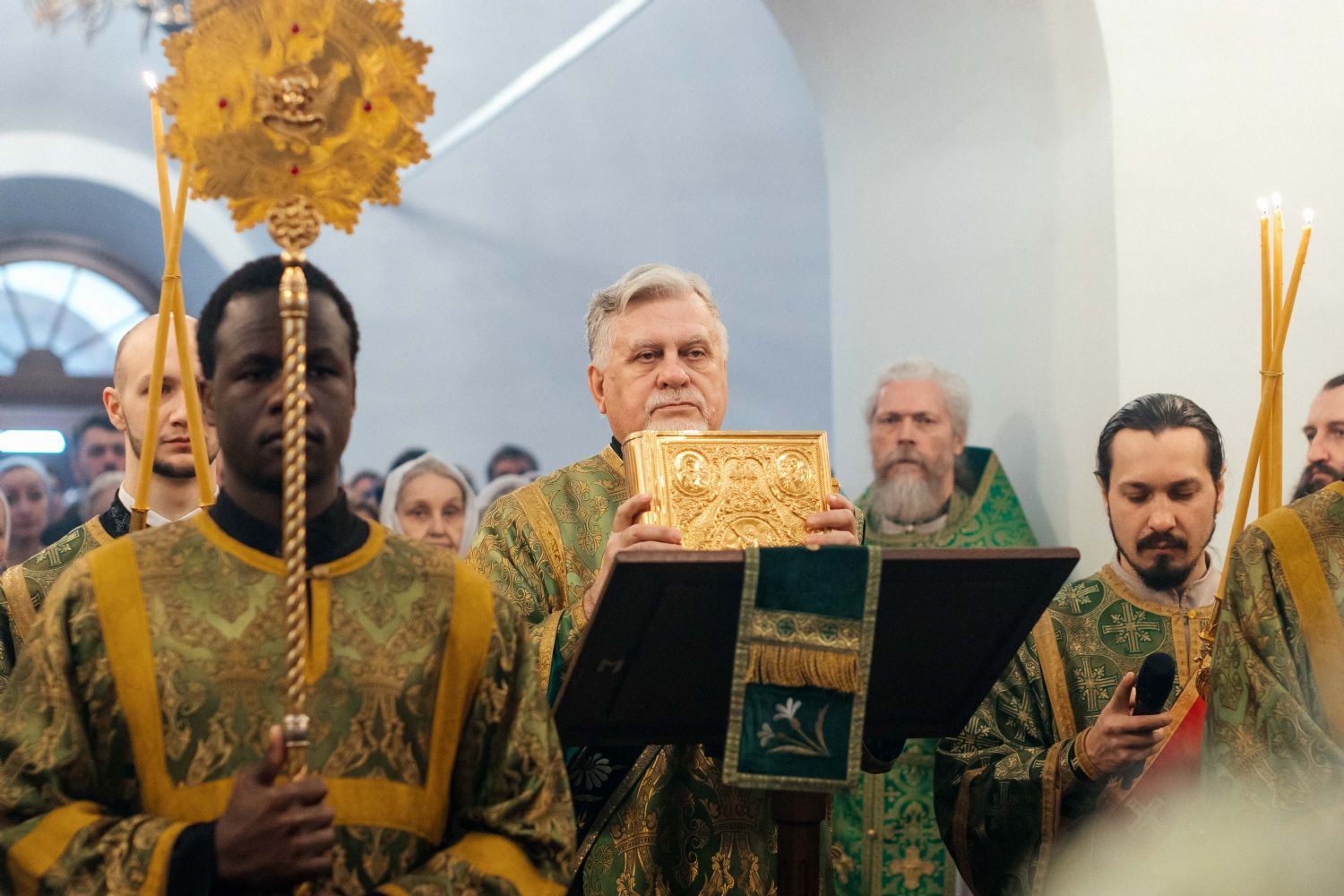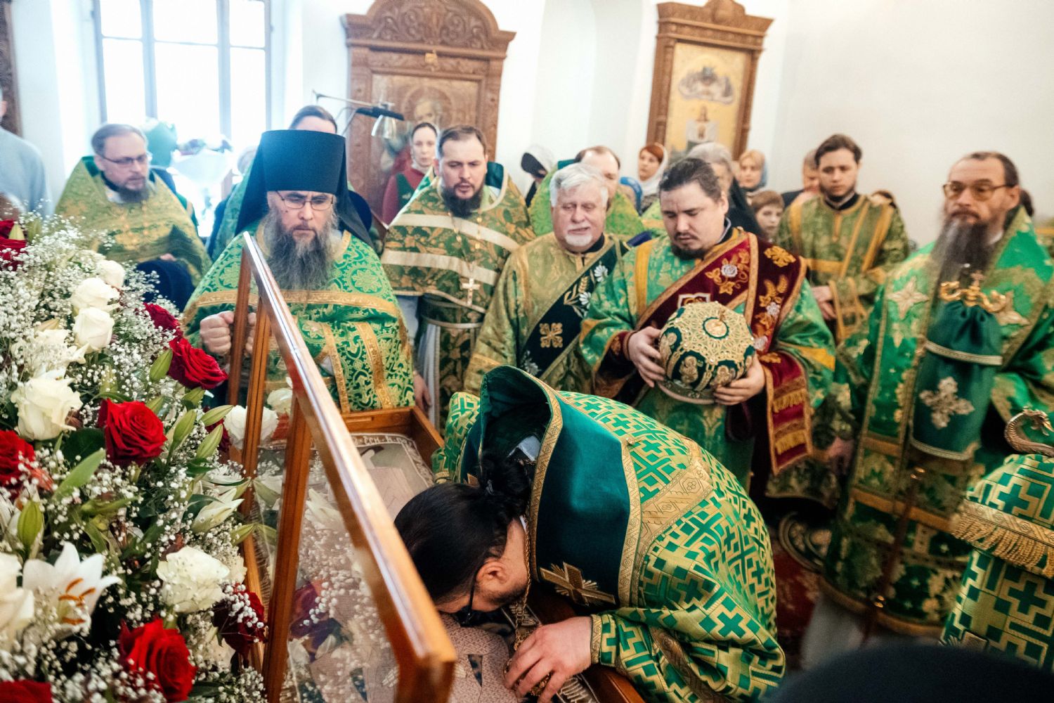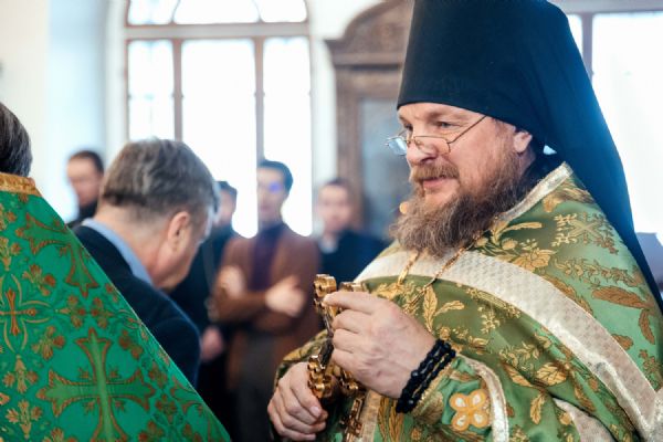 За богослужением пел семинарский хор под управлением регента диакона Никиты Панкратьева и женский хор под управлением регента Игоря Гончарова.