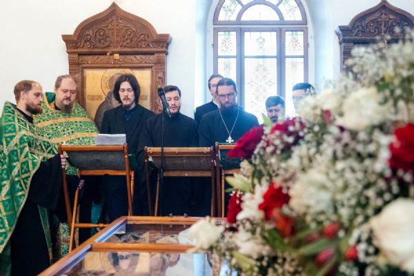По отпусте Литургии перед ракой с мощами святого праведного старца Феодора был отслужен праздничный молебен, по завершении которого митрополит Ростислав произнес проповедь.