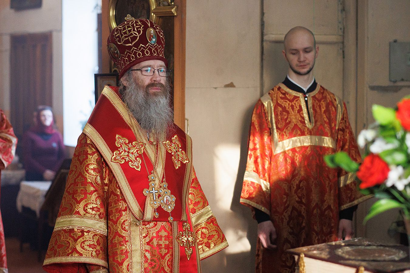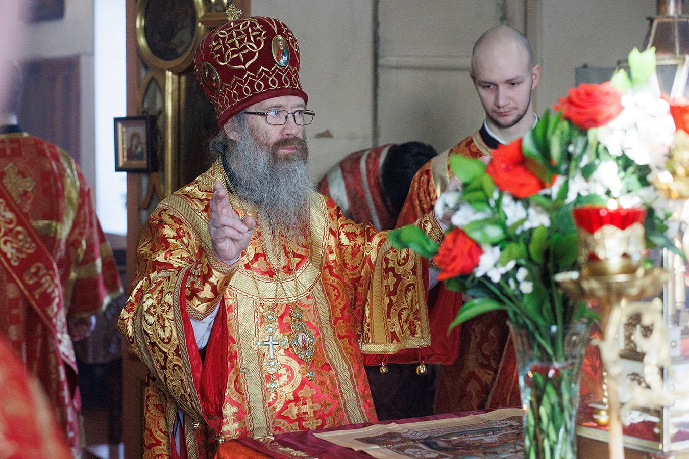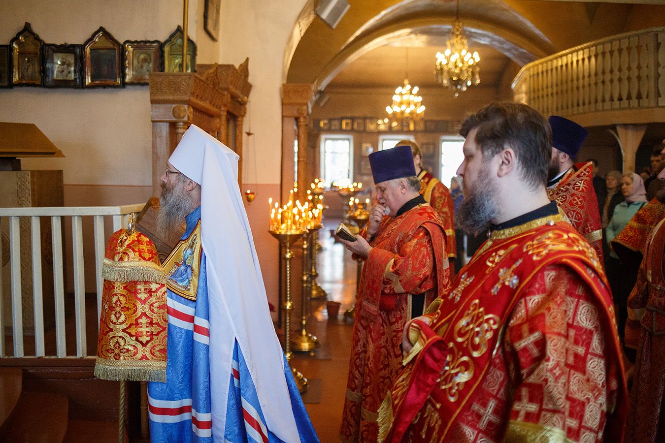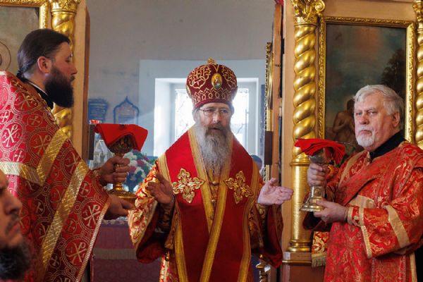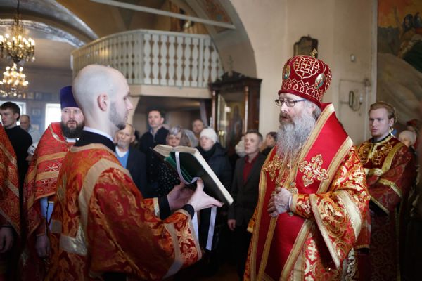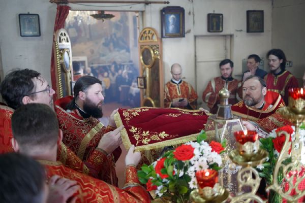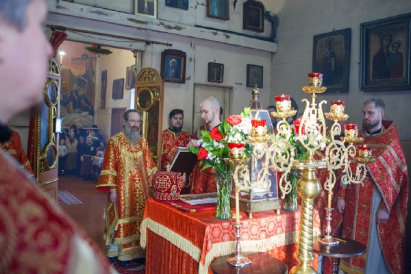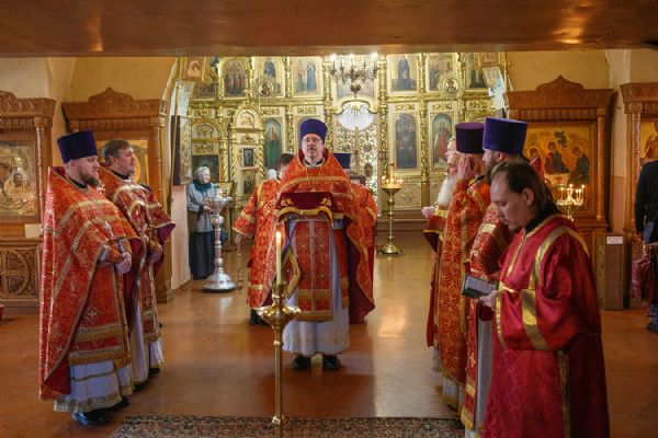 Его Высокопреосвященству сослужили благочинный Первого Градо-Томского благочиния, настоятель Александро-Невского храма протоиерей Сергий Никаноров, настоятель Свято-Троицкой церкви протоиерей Святослав Зулин, духовенство Троицкого храма, а также священники для которых Свято-Троицкая церковь явилась местом их рукоположения во священный сан – иерей Александр Скулкин настоятель храма в честь Рождества Иоанна Крестителя с.Комсомольск Первомайского района, иерей Владимир Колыхаев, настоятель храма Державной иконы Пресвятой Богородицы с.Кисловка Томского района.
