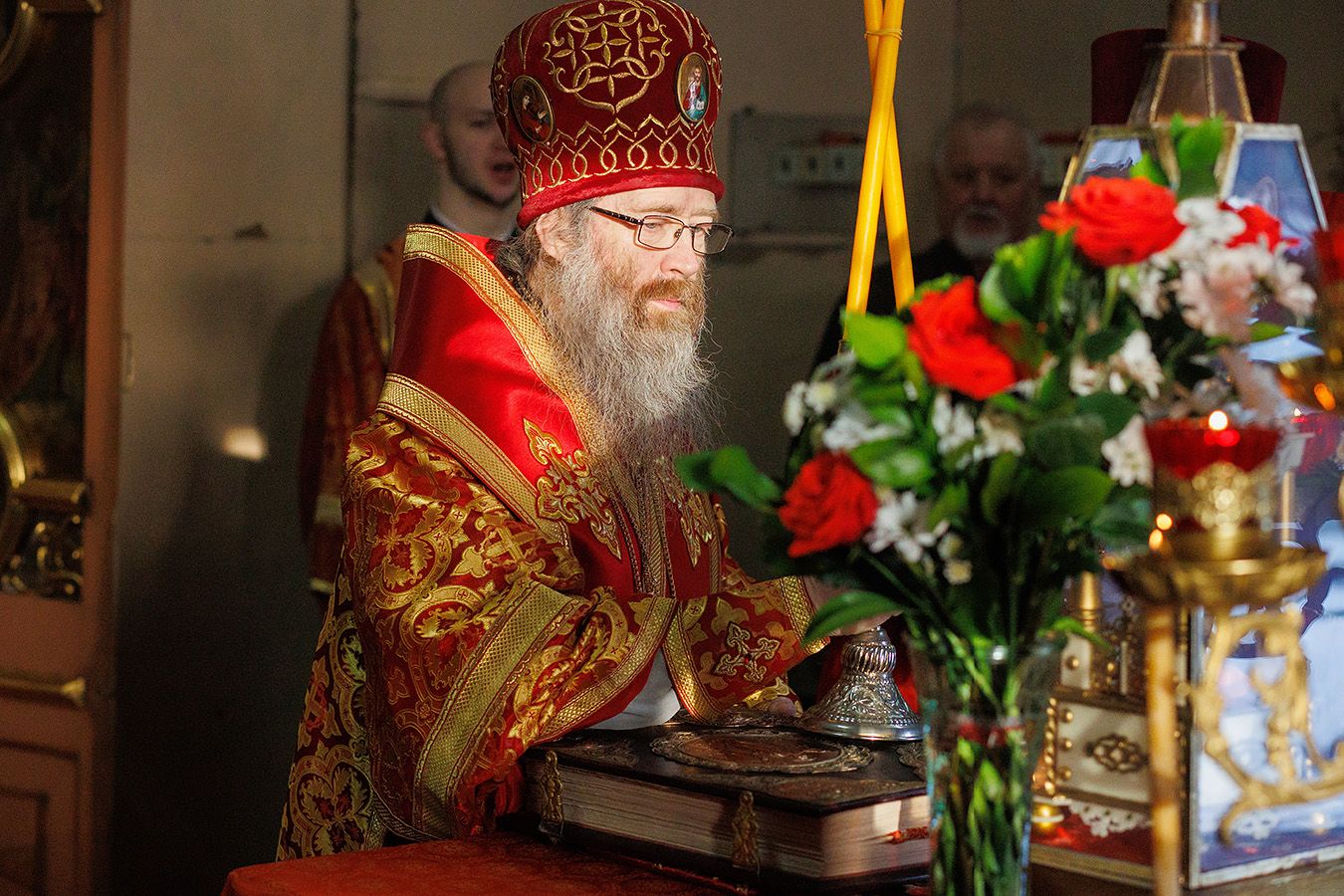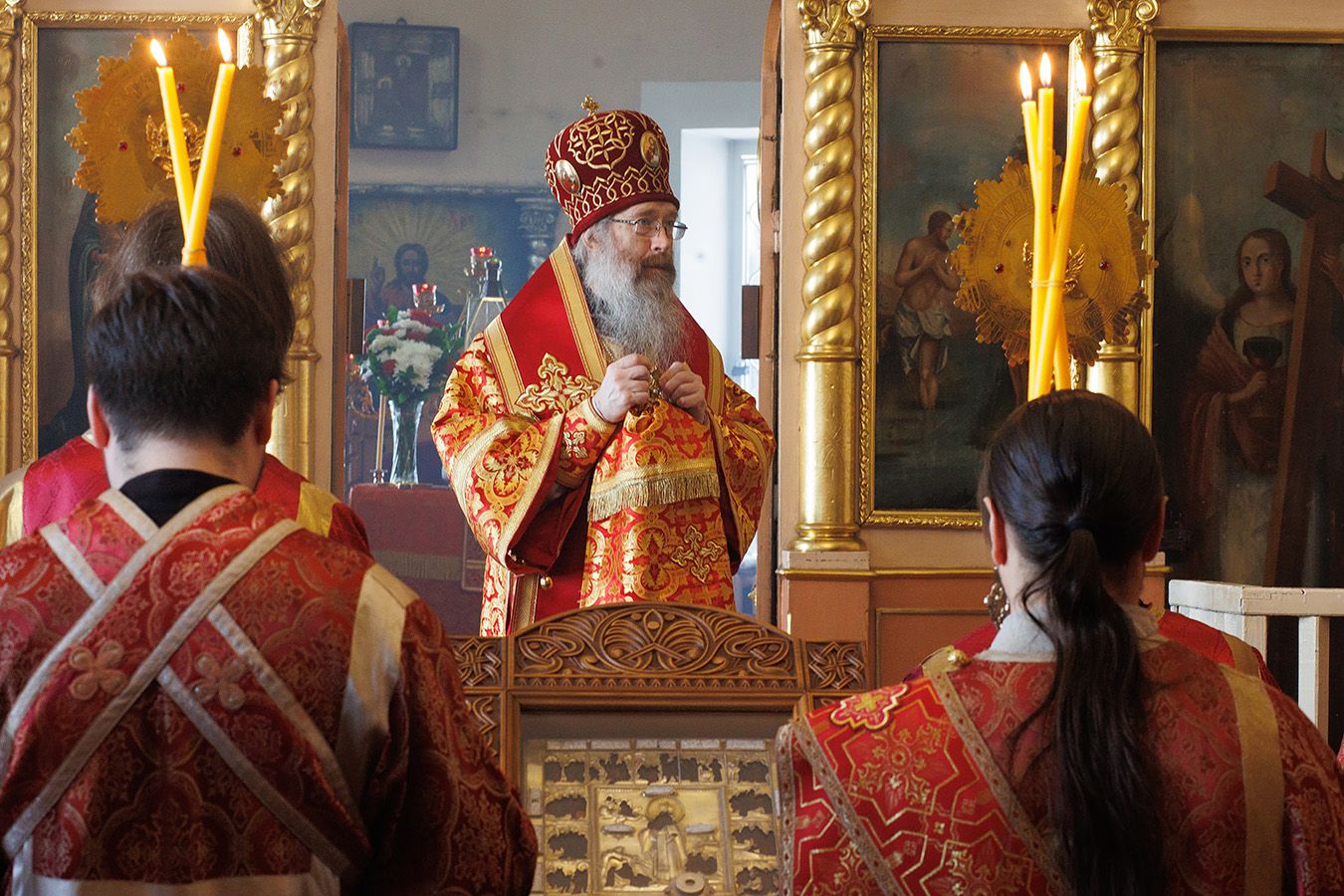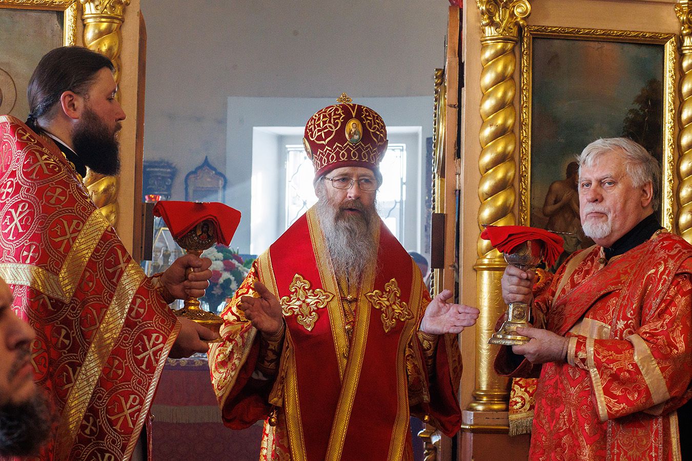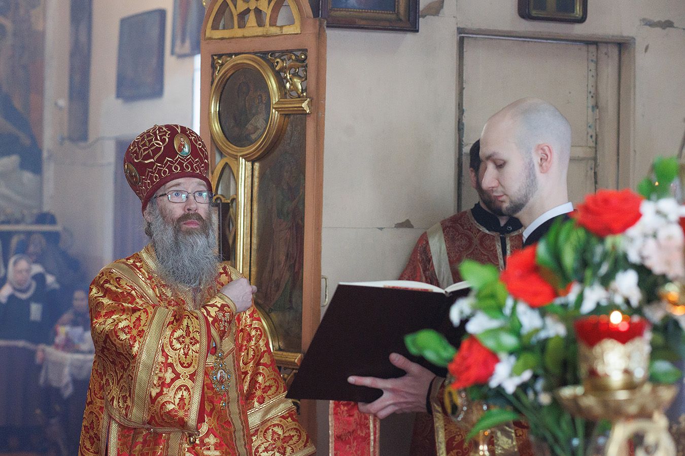 Его Высокопреосвященству сослужили благочинный Первого Градо-Томского благочиния, настоятель Александро-Невского храма протоиерей Сергий Никаноров, настоятель Свято-Троицкой церкви протоиерей Святослав Зулин, духовенство Троицкого храма, а также священники для которых Свято-Троицкая церковь явилась местом их рукоположения во священный сан – иерей Александр Скулкин настоятель храма в честь Рождества Иоанна Крестителя с.Комсомольск Первомайского района, иерей Владимир Колыхаев, настоятель храма Державной иконы Пресвятой Богородицы с.Кисловка Томского района.