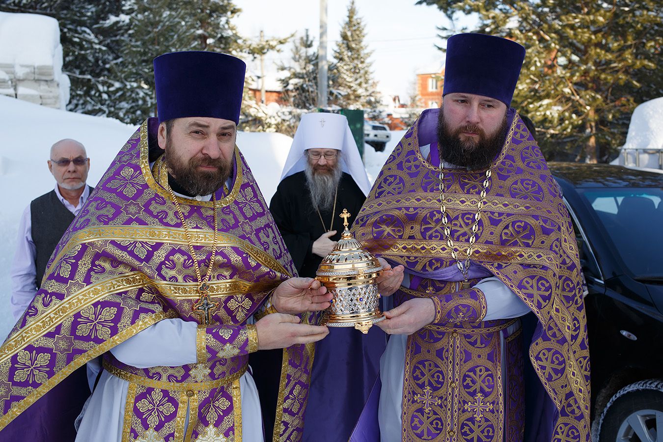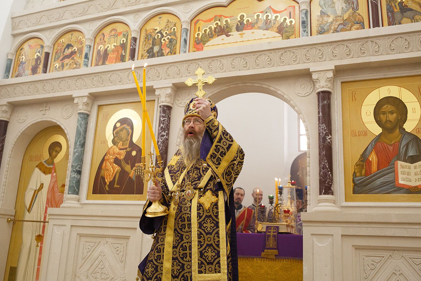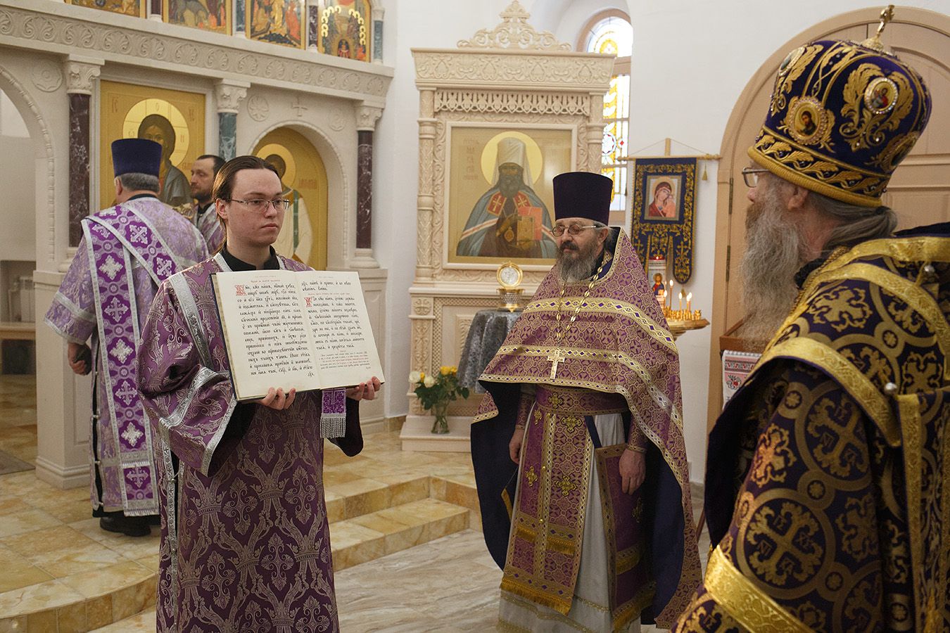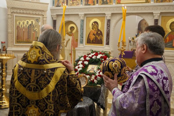 Его Высокопреосвященству сослужили благочинный Градо-Томского Благочиния протоиерей Сергий Никаноров и благочинный Томского района протоиерей Дионисий Степанов, а также настоятель храма святителя Макария протоиерей Андрей Носков, ключарь Петропавловского собора иерей Олег Огнев.