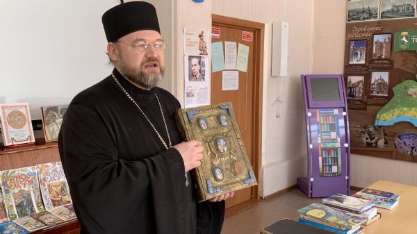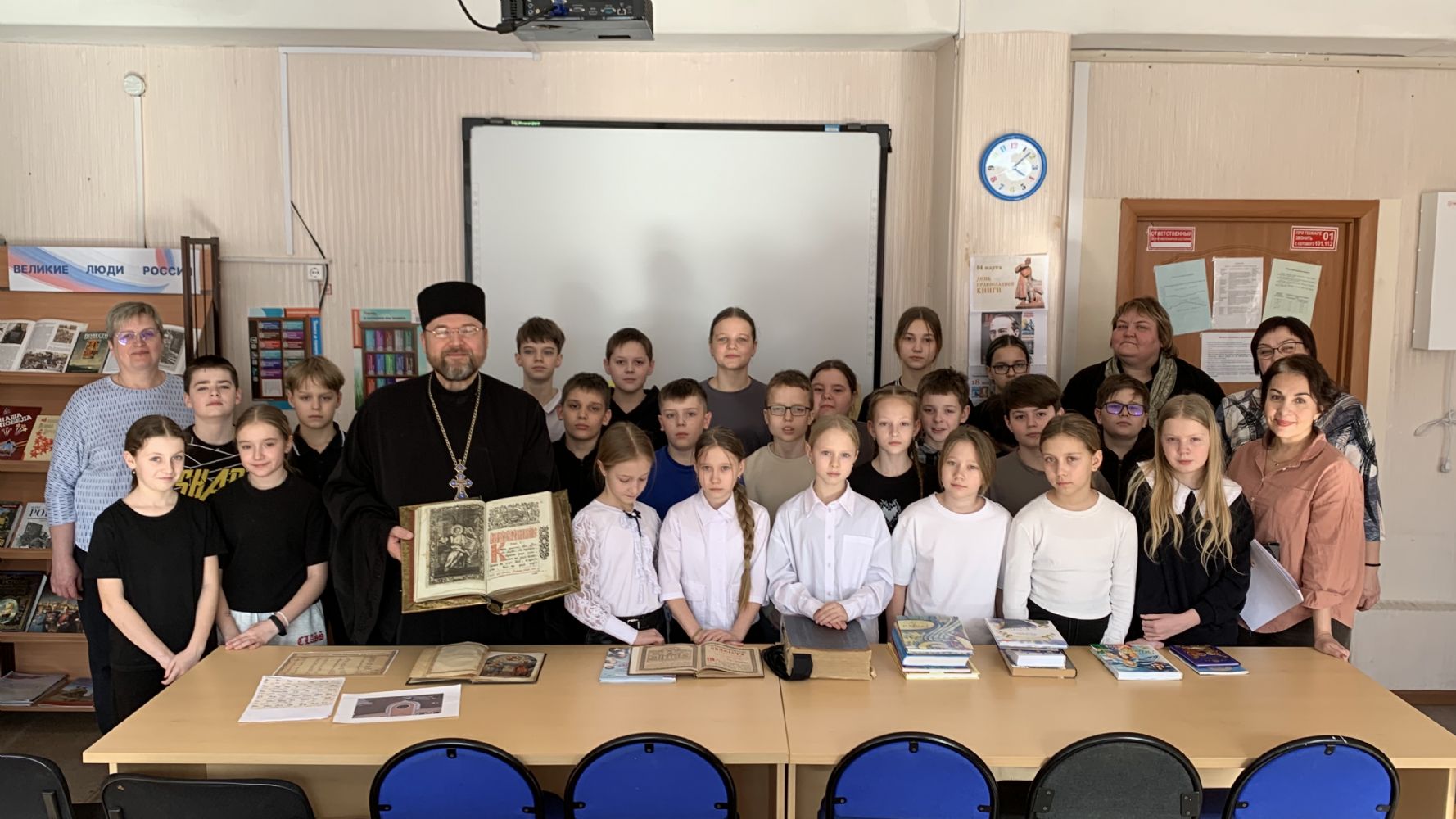 19 марта в 13 Гимназии г.Томска настоятель Свято-Троицкой церкви протоиерей Святослав Зулин провёл три тематических урока среди четвероклассников посвящённых Дню православной книги.