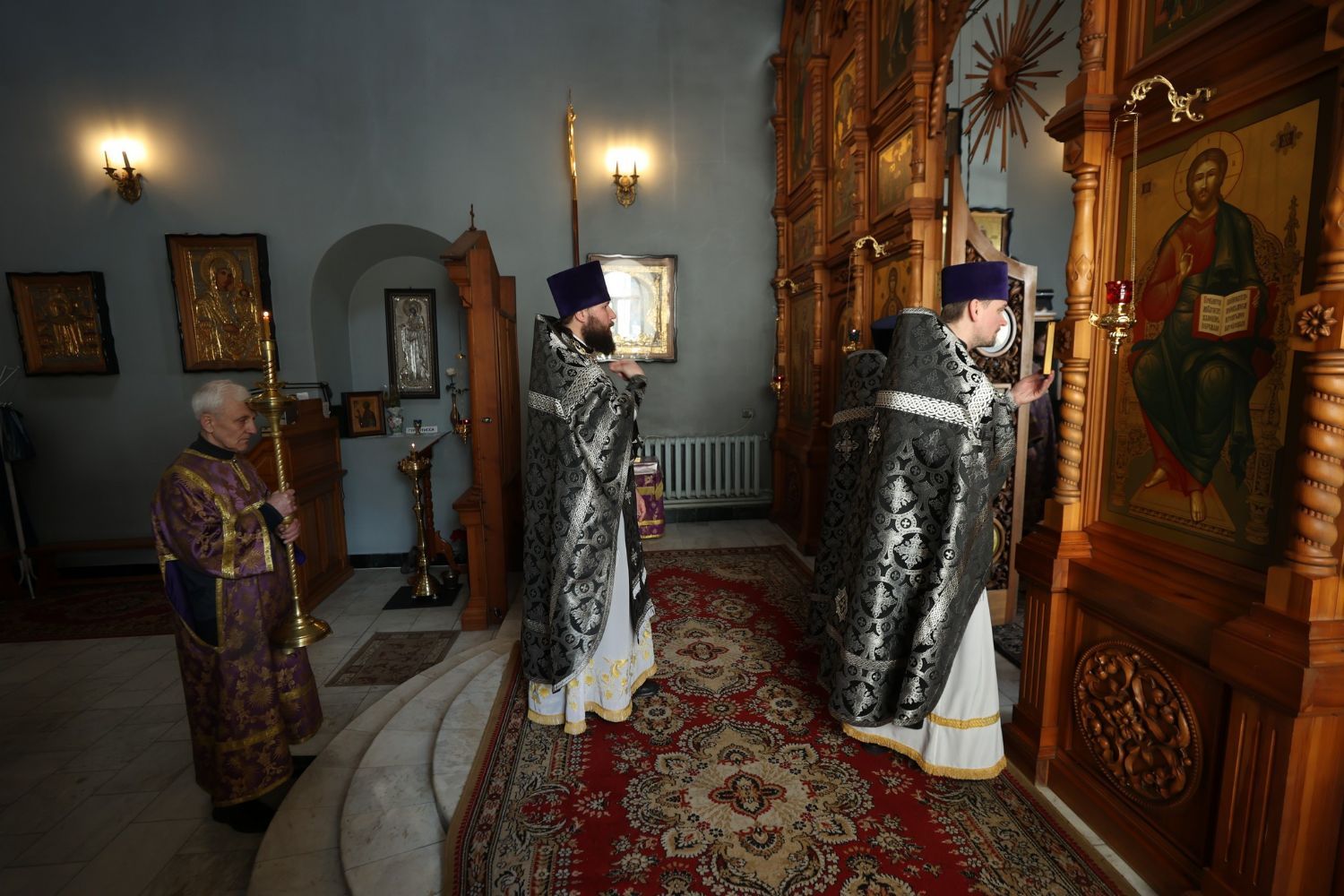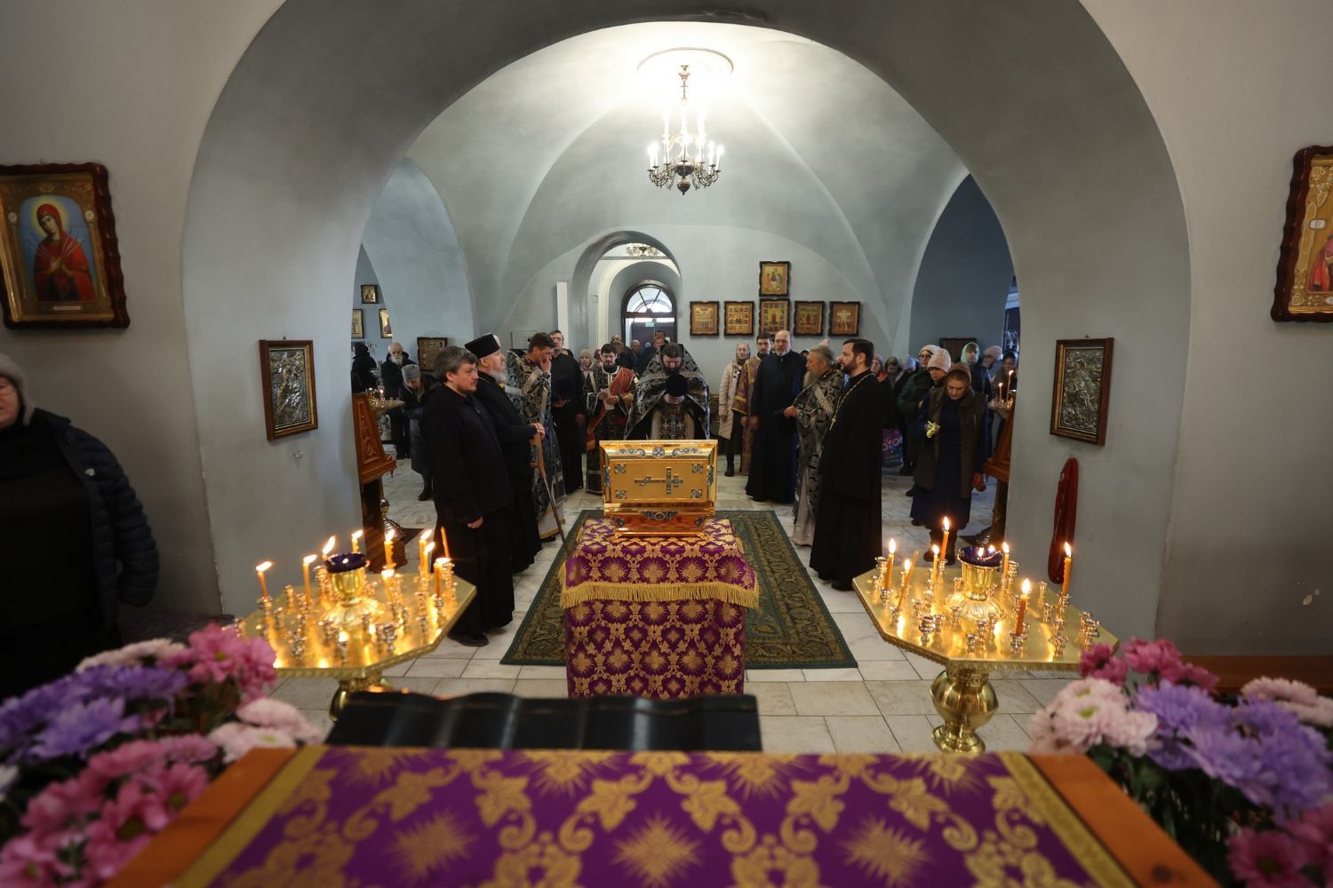 После встречи святыни в Знаменском храме была совершена Литургия Преждеосвященных Даров. Богослужение прошло в особой молитвенной атмосфере: верующие, собравшиеся у ковчега с мощами, возносили свои молитвы святителю Макарию, прославившему Томскую землю своими апостольскими трудами. По завершении Литургии духовенством и прихожанами было совершено славление святителю.