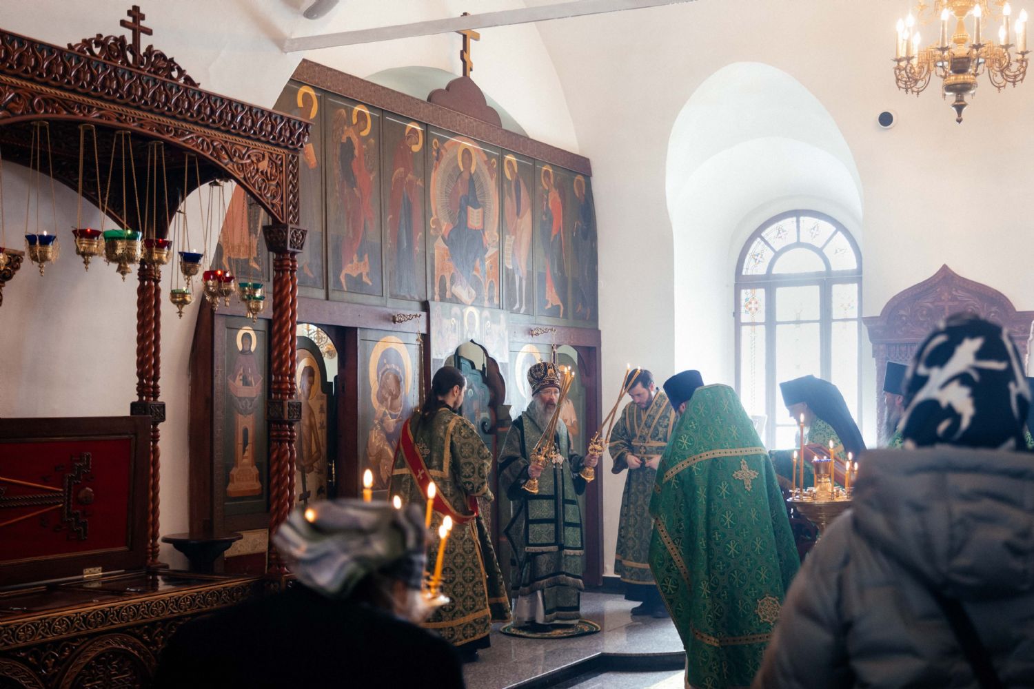 Его Высокопреосвященству сослужили благочинный Первого Градо-Томского благочиния протоиерей Сергий Никаноров, игумен монастыря иеромонах Иов (Коваль), протодиакон Владимир Марков, духовенство обители и Богоявленского собора г. Томска.