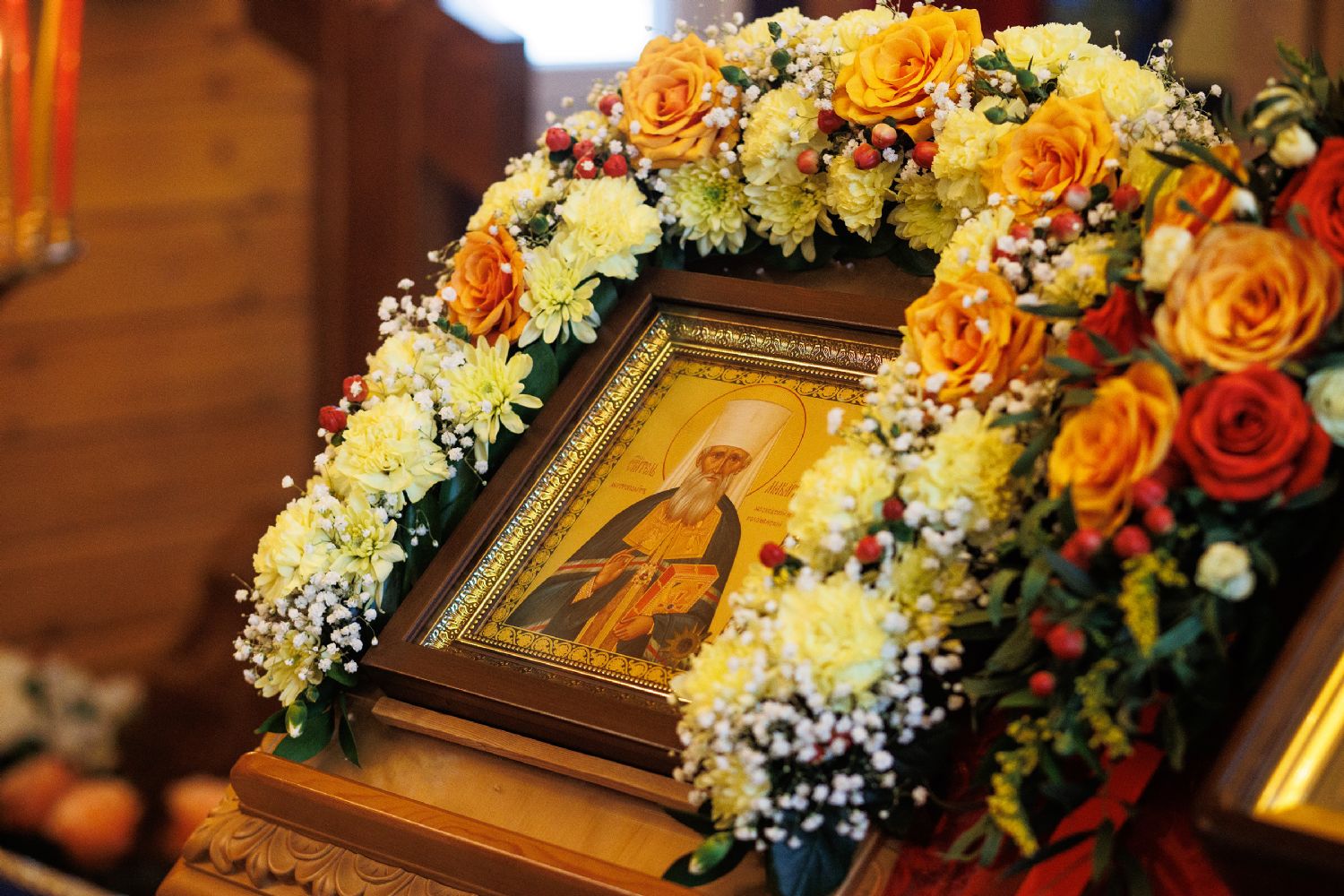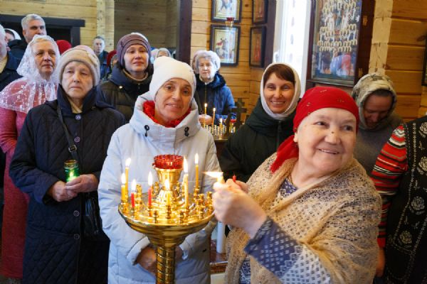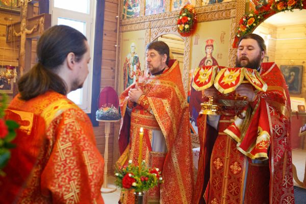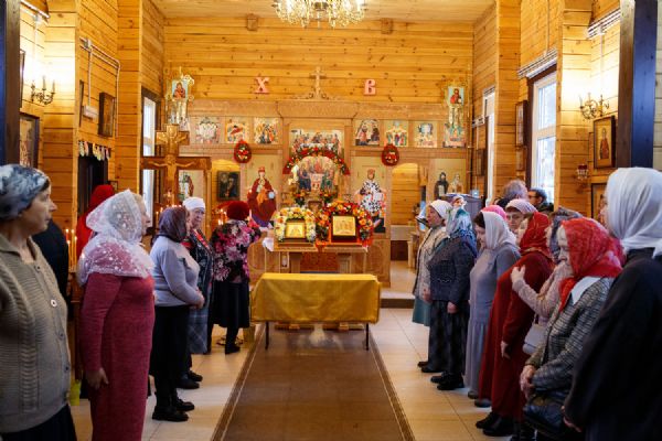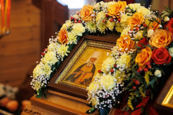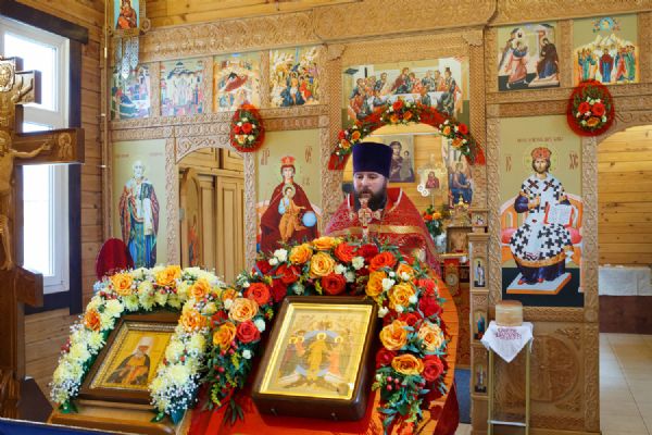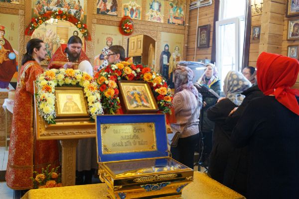 В храме была совершена праздничная Божественная литургия, крестный ход вокруг храма и молебен у ковчега с мощами. Прихожане храма приложились к святыне.