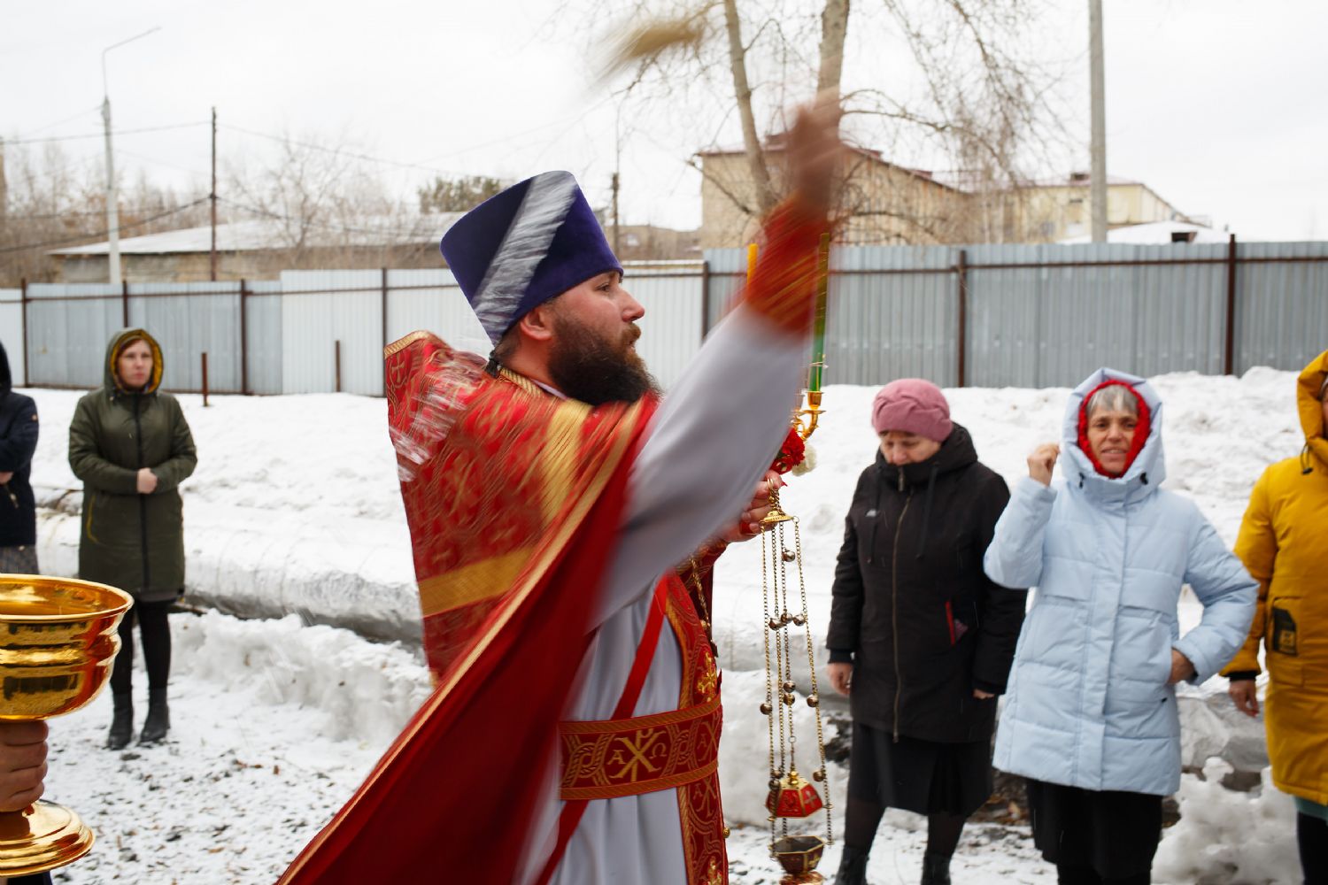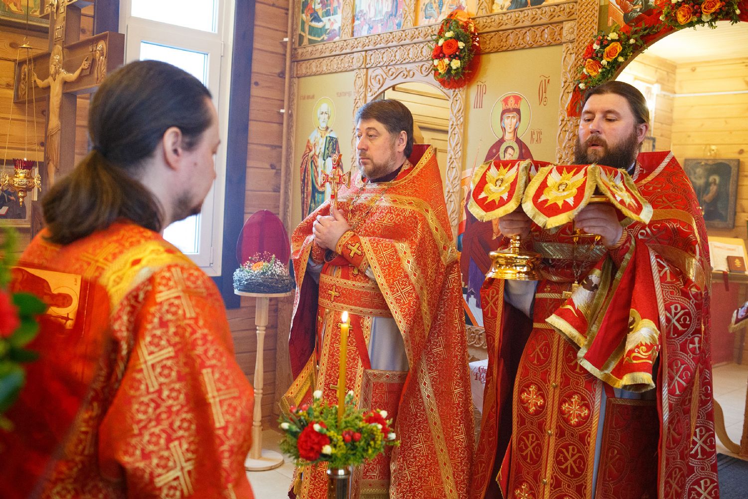 Ковчег с десницей святого доставил в храм перед Литургией благочинный Градо-Томского благочиния протоиерей Сергий Никаноров. Святыня была встречена множеством прихожан и настоятелем иереем Максимом Темняковым.