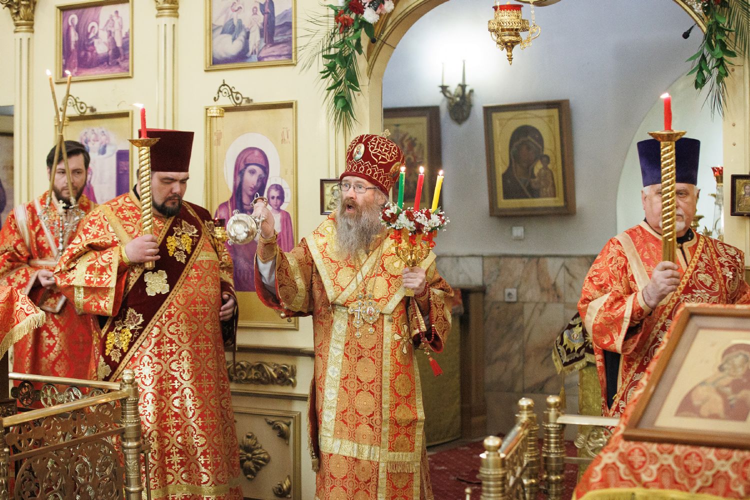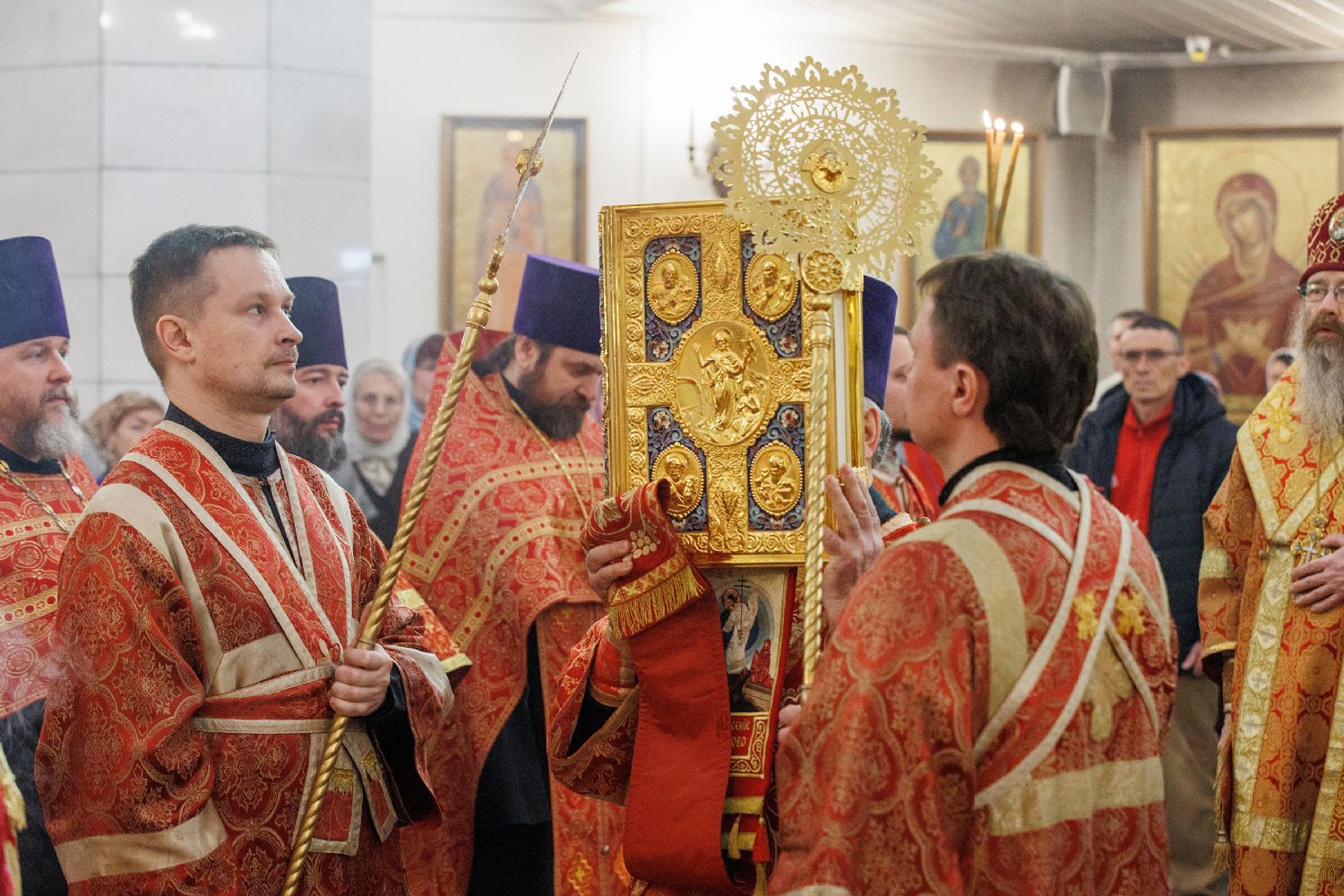 Митрополиту Томскому и Асиновскому Ростиславу сослужил настоятель храма Владимирской иконы Божией Матери протоиерей Дионисий Степанов, духовенство храма, а также настоятель храма прп. Серафима Саровского, г. Северска протоиерей Дмитрий Сергеев. Диаконский чин возглавил протодиакон Владимир Марков.
