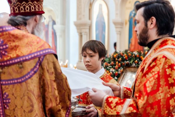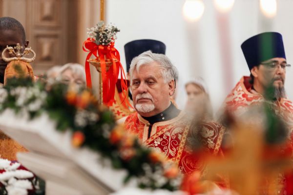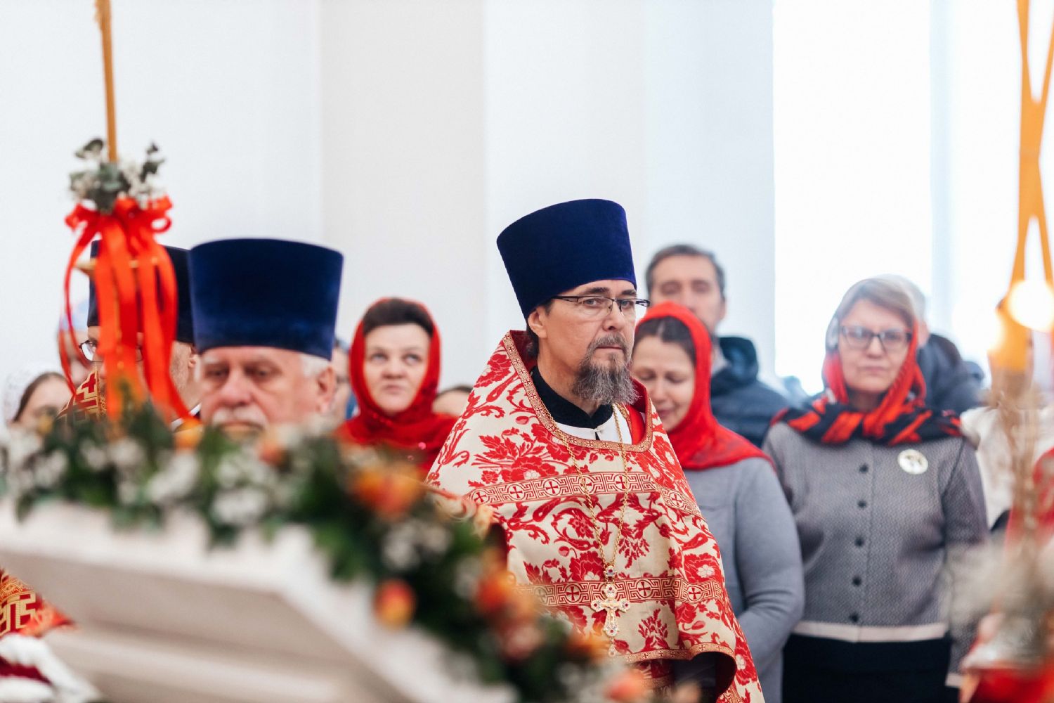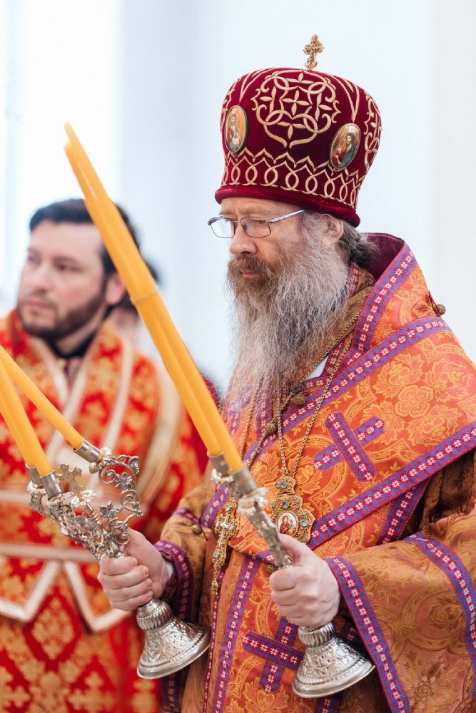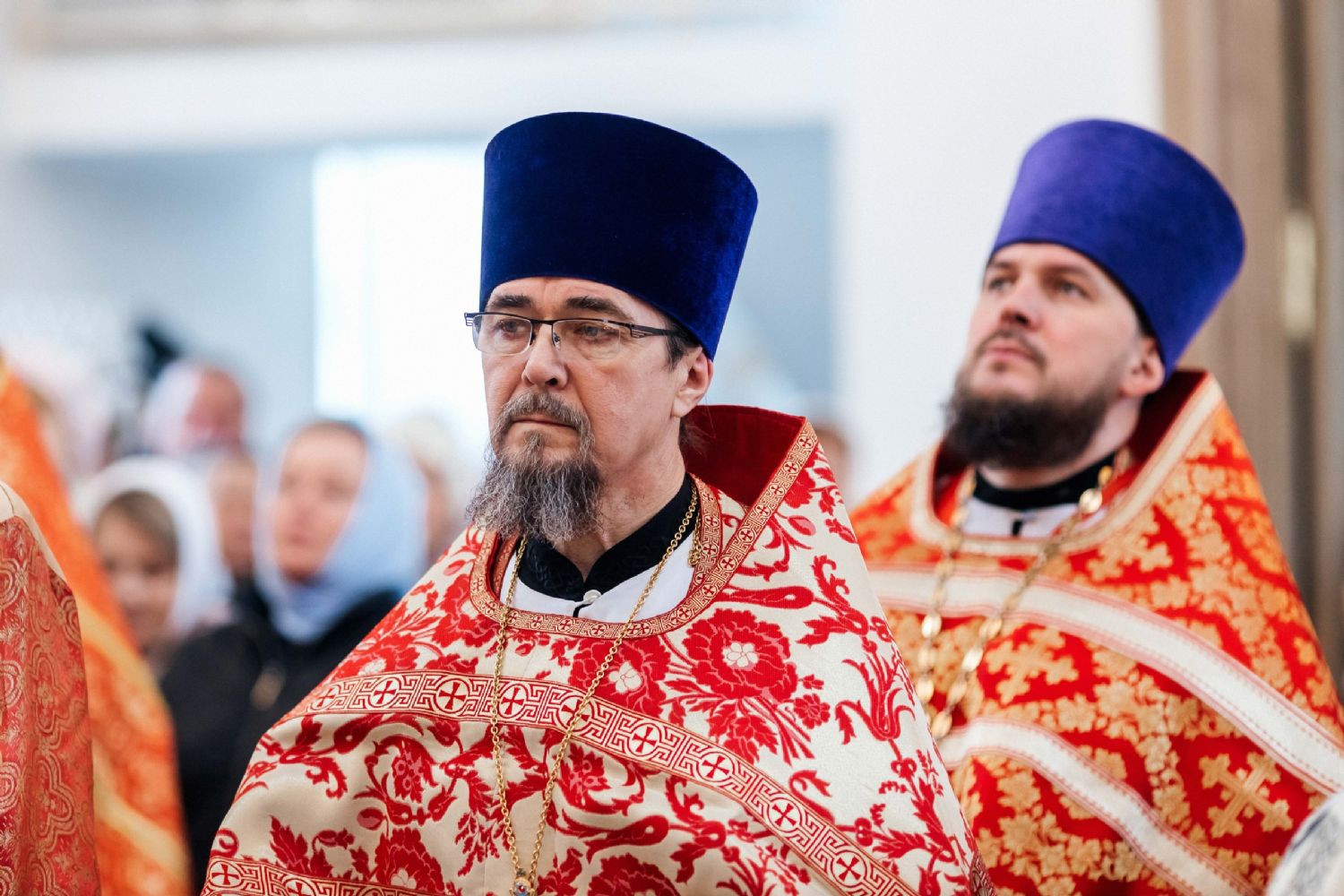 Его Высокопреосвященству сослужили митрофорный протоиерей Богдан Бида, благочинный Томского района протоиерей Дионисий Степанов, настоятель Спасского храма протоиерей Виталий Немов, ключарь Петропавловского собора иерей Олег Огнев, настоятель храма в честь иконы Божией Матери «Неувядаемый Цвет» в пос. Трубачево иерей Александр Сидоров и настоятель храма св. мученицы Татианы иерей Евгений Растяпин.