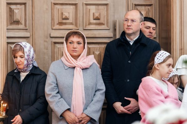 За Божественной литургией молились жители поселка, томичи и сотрудники агрокомплекса «Трубачево», председатель Законодательной Думы Томской области Оксана Витальевна Козловская, инициатор и меценат строительства храма, директор ООО «Трубачево» Галина Иннокентьевна Шанина.