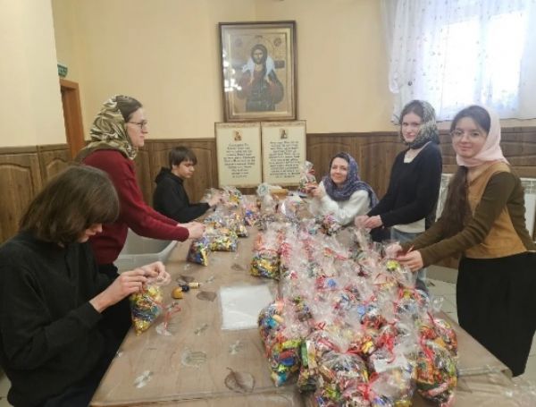 Партию сладких подарков приход передал для поздравления подопечных социального учреждения «Дом ночного пребывания «Приют странника».
