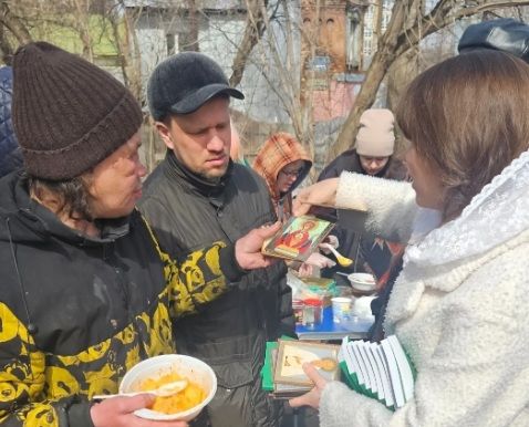 Под руководством помощницы настоятеля Ольги Степановой северские подростки приготовили пасхальные подарки, которые затем раздали во время кормления бездомных. Нуждающиеся люди получили сладкие подарки, пряники, фрукты, а также Евангелия и иконы.