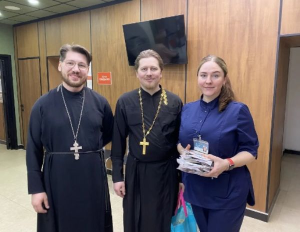 Богоявленский приход поздравил с Воскресением Христовым около 700 пациентов и сотрудников онкодспансера, более 300 человек, находящихся на лечении в двух городских поликлинических отделениях, а также сотрудников медицинской лаборатории.